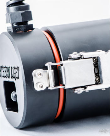 The end of the light head has a groove that allows for a bolt snap tie off.
